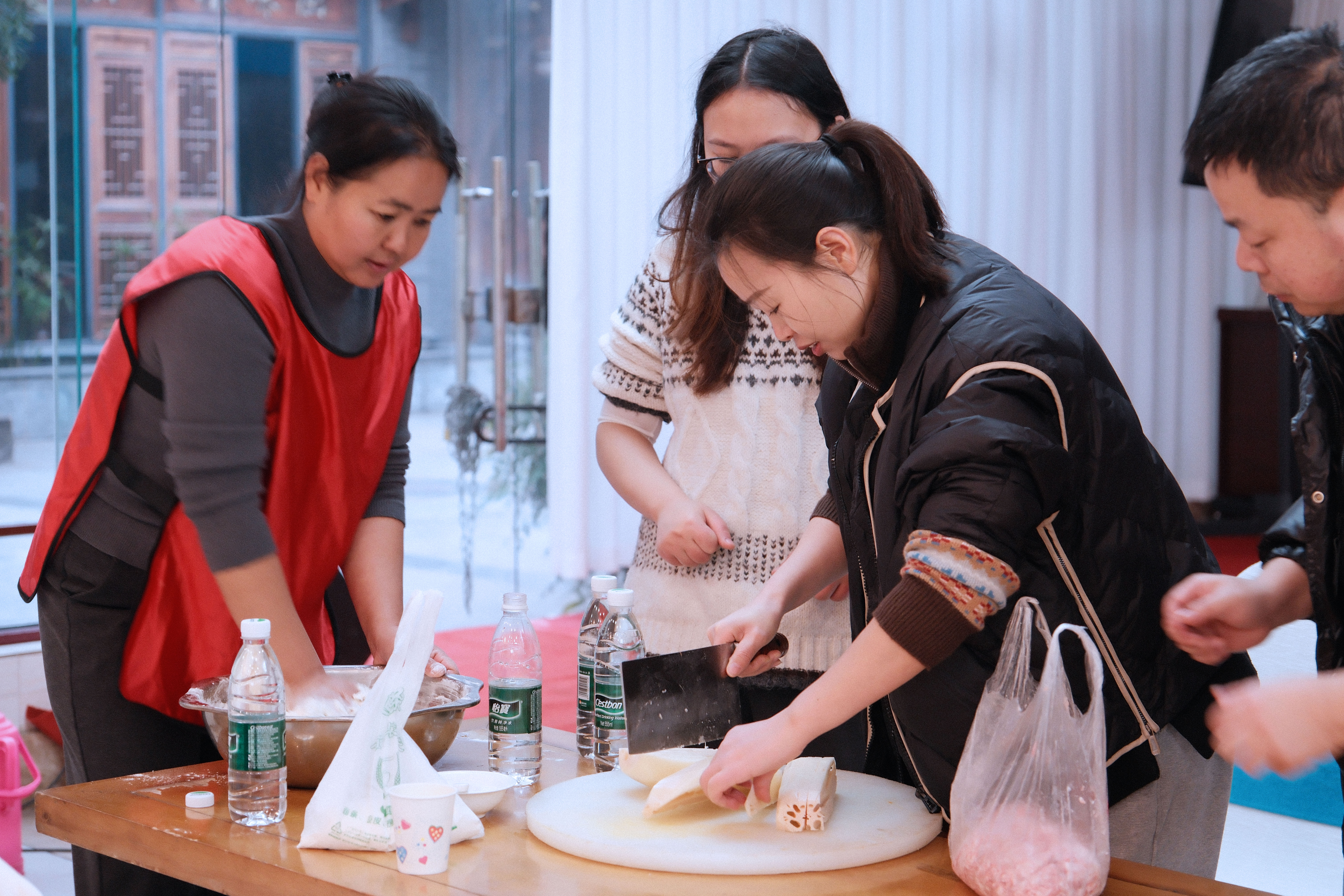 12月19日一早,后勤部提前准备好了新鲜食材和工具,各比赛小组围坐一堂,分工协作:揉面擀皮,调馅包饺,最后摆盘装盒,大家从一开始无从下手到动作娴熟、配合默契,不过短短几十分钟。