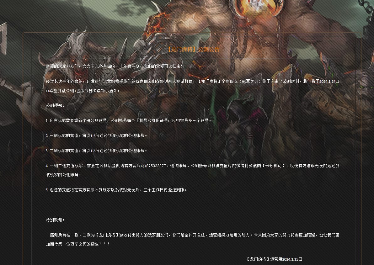 近期,由集团投资的电子游戏产品《龙门虎将》已经正式上线平台,以鲜明的游戏特色,彰显独特的文化精神内涵。