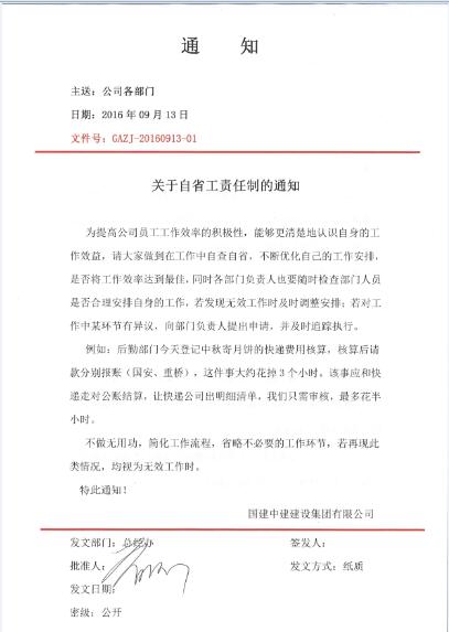 为提高公司员工工作效率的积极性,能够更清楚地认识自身的工作效益,请大家做到在工作中自查自省,不断优化自己的工作安排,是否将工作效率达到最佳,同时各部门负责人也要随时检查部门人员是否合理安排自身的工作,若发现无效工作时及时调整安排;若对工作中某环节有异议,向部门负责人提出申请,并及时追踪执行。